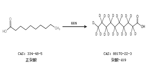 1.通过正癸酸合成癸酸-d19,收率约66%;