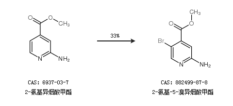 1.通过2-氨基异烟酸甲酯合成2-氨基-5-溴异烟酸甲酯,收率约33%;