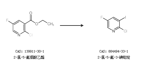 2.通过2-氯-5-氟烟酸乙酯合成2-氯-5-氟-3-碘吡啶