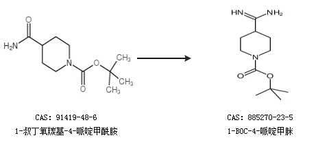1.通过1-叔丁氧羰基-4-哌啶甲酰胺合成1-BOC-4-哌啶甲脒