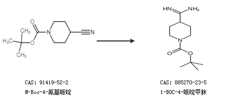 2.通过N-Boc-4-氰基哌啶合成1-BOC-4-哌啶甲脒