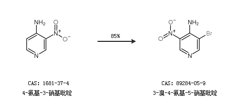 1.通过4-氨基-3-硝基吡啶合成3-溴-4-氨基-5-硝基吡啶,收率约85%;