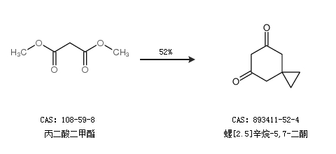 1.通过丙二酸二甲酯合成螺[2.5]辛烷-5,7-二酮,收率约52%;