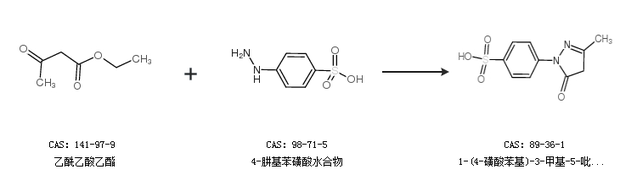 1.通过乙酰乙酸乙酯和4-肼基苯磺酸水合物合成1-(4-磺酸苯基)-3-甲基-5-吡唑酮