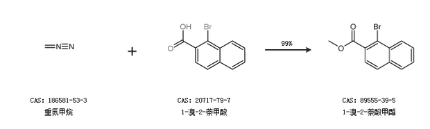 2.通过重氮甲烷和1-溴-2-萘甲酸合成1-溴-2-萘酸甲酯,收率约99%;