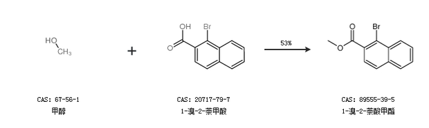 1.通过甲醇和1-溴-2-萘甲酸合成1-溴-2-萘酸甲酯,收率约53%;