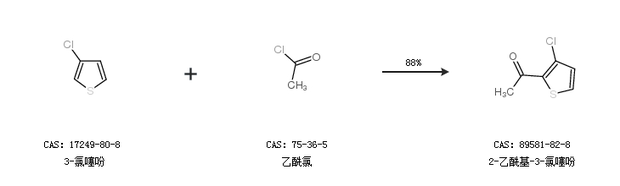2.通过3-氯噻吩和乙酰氯合成2-乙酰基-3-氯噻吩,收率约88%;