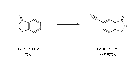 英文别名 3-oxo-phthalan-5-carbonitrile;3-Oxo-1,3-dihydroisobenzofuran-5-carbonitrile;6-CYANOPHTHALIDE;5-Isobenzofurancarbonitrile,1,3-dihydro-3-oxo;1-oxo-1,3-dihydroisobenzofuran-6-carbonitrile;3-Oxo-phthalan-5-carbonitril;6-cyanoisobenzofuran-1(3H)-one;