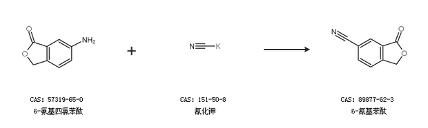 1.通过6-氨基四氯苯酞和氰化钾合成6-氰基苯酞