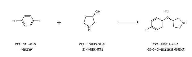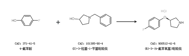 1.通过4-氟苯酚和(S)-3-羟基-1-苄基吡咯烷合成(R)-3-(4-氟苯氧基)吡咯烷