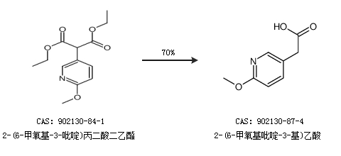 1.通过2-(6-甲氧基-3-吡啶)丙二酸二乙酯合成2-(6-甲氧基吡啶-3-基)乙酸,收率约70%;