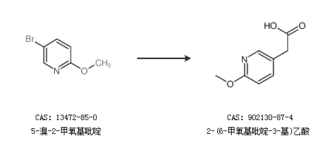 2.通过5-溴-2-甲氧基吡啶合成2-(6-甲氧基吡啶-3-基)乙酸