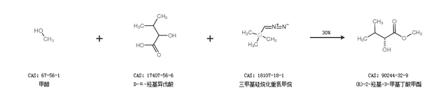 2.通过甲醇、D-α-羟基异戊酸和三甲基硅烷化重氮甲烷合成(R)-2-羟基-3-甲基丁酸甲酯,收率约30%;