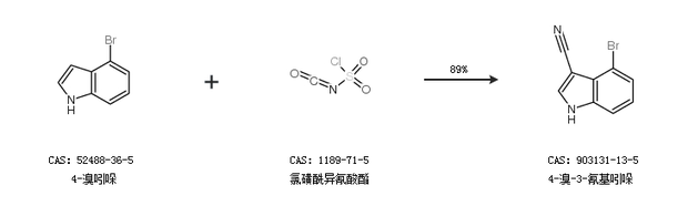 1.通过4-溴吲哚和氯磺酰异氰酸酯合成4-溴-3-氰基吲哚,收率约89%;
