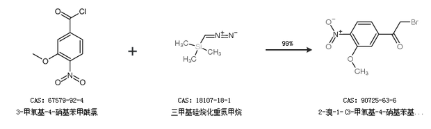 1.通过3-甲氧基-4-硝基苯甲酰氯和三甲基硅烷化重氮甲烷合成2-溴-1-(3-甲氧基-4-硝基苯基)-1-乙酮,收率约99%;