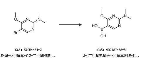 1.通过5-溴-4-甲氧基-N,N-二甲基嘧啶-2-胺合成2-(二甲基氨基)-4-甲氧基嘧啶-5-基硼酸