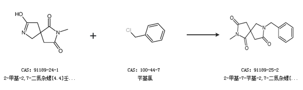 1.通过2-甲基-2,7-二氮杂螺[4.4]壬烷-1,3,8-三酮和苄基氯合成2-甲基-7-苄基-2,7-二氮杂螺[4.4]-1,3,8-壬三酮