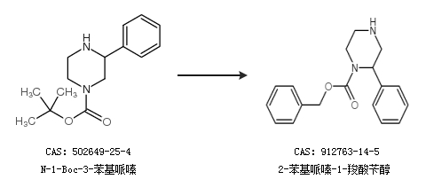 2.通过N-1-Boc-3-苯基哌嗪合成2-苯基哌嗪-1-羧酸苄醇