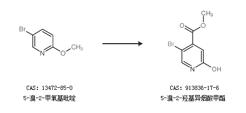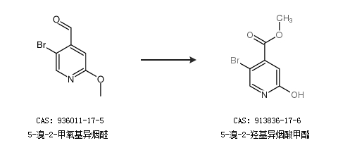 1.通过5-溴-2-甲氧基异烟醛合成5-溴-2-羟基异烟酸甲酯