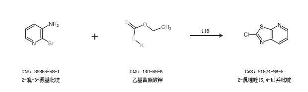 1.通过2-溴-3-氨基吡啶和乙基黄原酸钾合成2-氯噻唑[5,4-b]并吡啶,收率约11%;