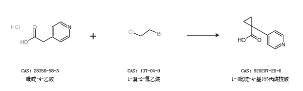 1.通过吡啶-4-乙酸和1-溴-2-氯乙烷合成1-(吡啶-4-基)环丙烷羧酸