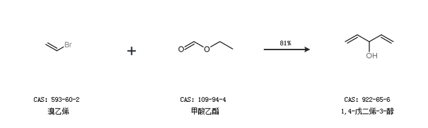 1.通过溴乙烯和甲酸乙酯合成1,4-戊二烯-3-醇,收率约81%;