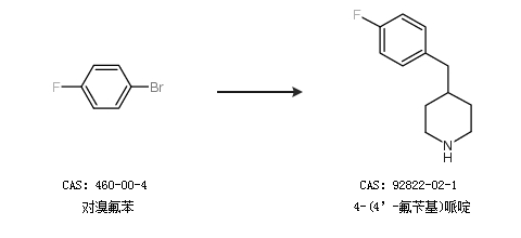 2.通过对溴氟苯合成4-(4’-氟苄基)哌啶