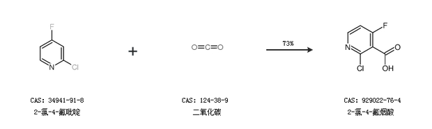 1.通过2-氯-4-氟吡啶和二氧化碳合成2-氯-4-氟烟酸,收率约73%;