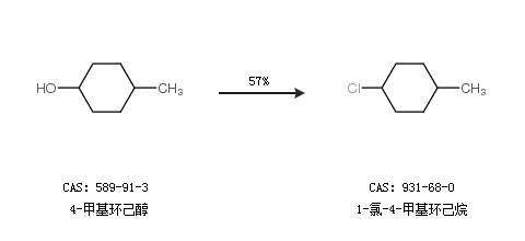 1.通过4-甲基环己醇合成1-氯-4-甲基环己烷,收率约57%;