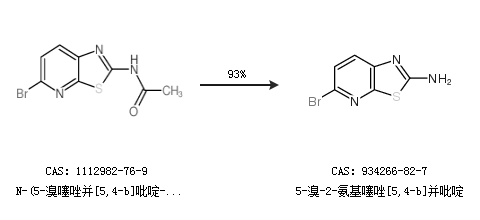 2.通过N-(5-溴噻唑并[5,4-b]吡啶-2-基)乙酰胺合成5-溴-2-氨基噻唑[5,4-b]并吡啶,收率约93%;