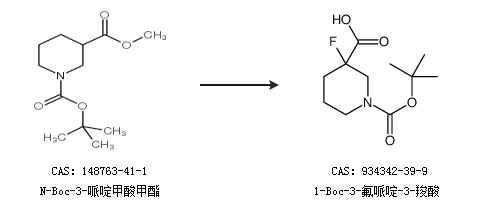 2.通过N-Boc-3-哌啶甲酸甲酯合成1-Boc-3-氟哌啶-3-羧酸