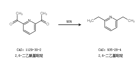 1.通过2,6-二乙酰基吡啶合成2,6-二乙基吡啶,收率约90%;