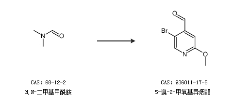 2.通过N,N-二甲基甲酰胺合成5-溴-2-甲氧基异烟醛
