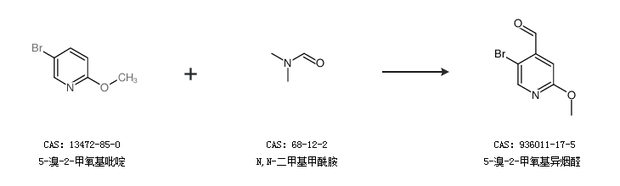 1.通过5-溴-2-甲氧基吡啶和N,N-二甲基甲酰胺合成5-溴-2-甲氧基异烟醛