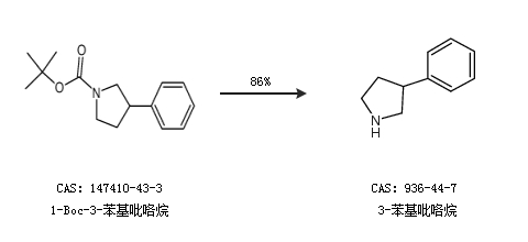 1.通过1-Boc-3-苯基吡咯烷合成3-苯基吡咯烷,收率约86%;