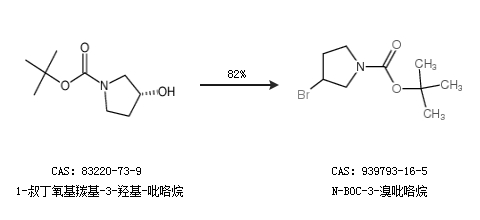 1.通过1-叔丁氧基羰基-3-羟基-吡咯烷合成N-BOC-3-溴吡咯烷,收率约82%;