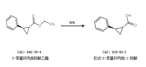1.通过2-苯基环丙烷羧酸乙酯合成反式-2-苯基环丙烷-1-羧酸,收率约90%;