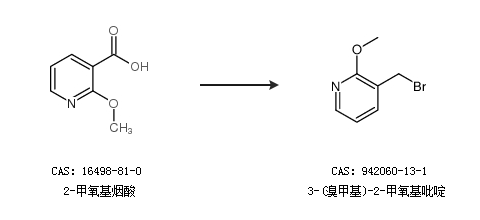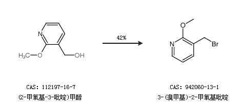 1.通过(2-甲氧基-3-吡啶)甲醇合成3-(溴甲基)-2-甲氧基吡啶,收率约42%;