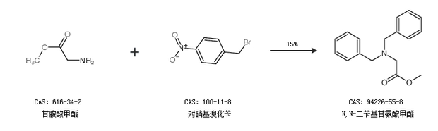2.通过甘胺酸甲酯和对硝基溴化苄合成N,N-二苄基甘氨酸甲酯,收率约15%;