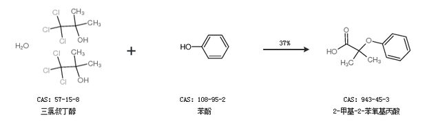 1.通过三氯叔丁醇和苯酚合成2-甲基-2-苯氧基丙酸,收率约37%;