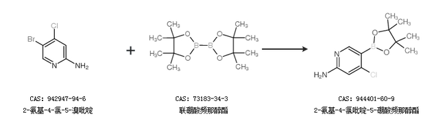 1.通过2-氨基-4-氯-5-溴吡啶和联硼酸频那醇酯合成2-氨基-4-氯吡啶-5-硼酸频那醇酯