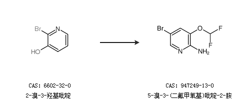 1.通过2-溴-3-羟基吡啶合成5-溴-3-(二氟甲氧基)吡啶-2-胺