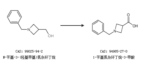 2.通过N-苄基-3-(羟基甲基)氮杂环丁烷合成1-苄基氮杂环丁烷-3-甲酸