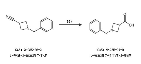 1.通过1-苄基-3-氰基氮杂丁烷合成1-苄基氮杂环丁烷-3-甲酸,收率约82%;