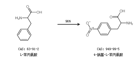 1.通过L-苯丙氨酸合成4-硝基-L-苯丙氨酸,收率约96%;