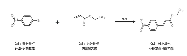 2.通过1-溴-4-硝基苯和丙烯酸乙酯合成4-硝基肉桂酸乙酯,收率约90%;