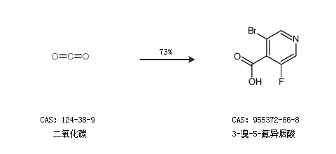 1.通过二氧化碳合成3-溴-5-氟异烟酸,收率约73%;