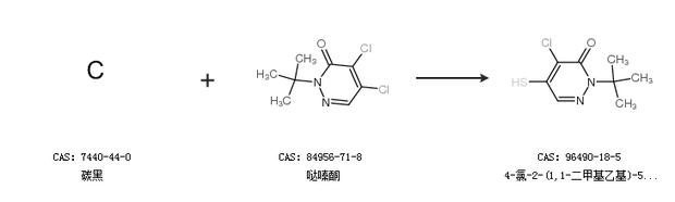 2.通过碳黑和哒嗪酮合成4-氯-2-(1,1-二甲基乙基)-5-疏基-3(2H)-吡嗪酮
