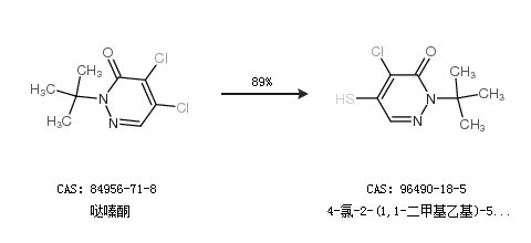 1.通过哒嗪酮合成4-氯-2-(1,1-二甲基乙基)-5-疏基-3(2H)-吡嗪酮,收率约89%;
