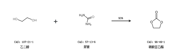2.通过乙二醇和尿素合成碳酸亚乙酯,收率约93%;